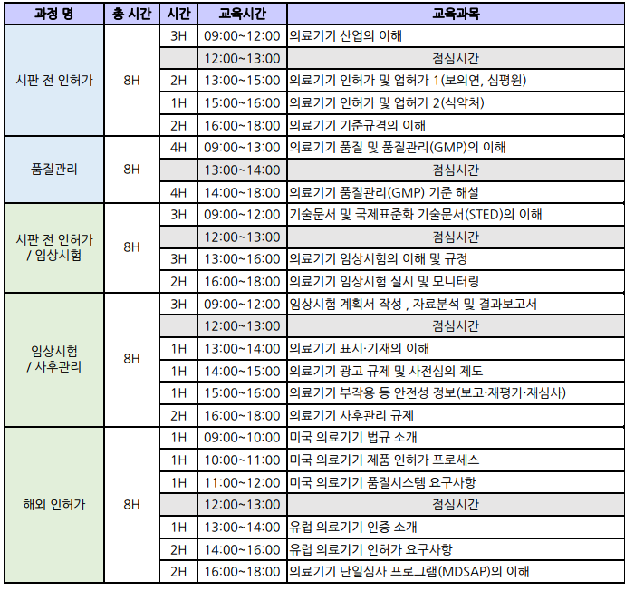 ※ 본 과정 수료 시 의료기기 규제과학(RA) 전문가 2급 국가공인 자격시험 응시자격이 주어집니다.