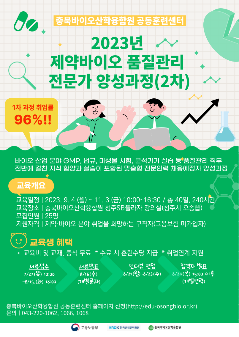 제약바이오 품질관리 전문가 양성과정(2차) 교육생 모집