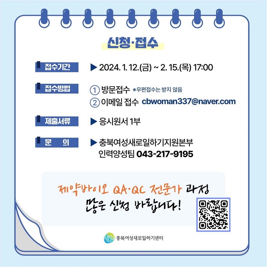 * 문의처: 충북여성새로일하기지원본부 (043-217-9195)