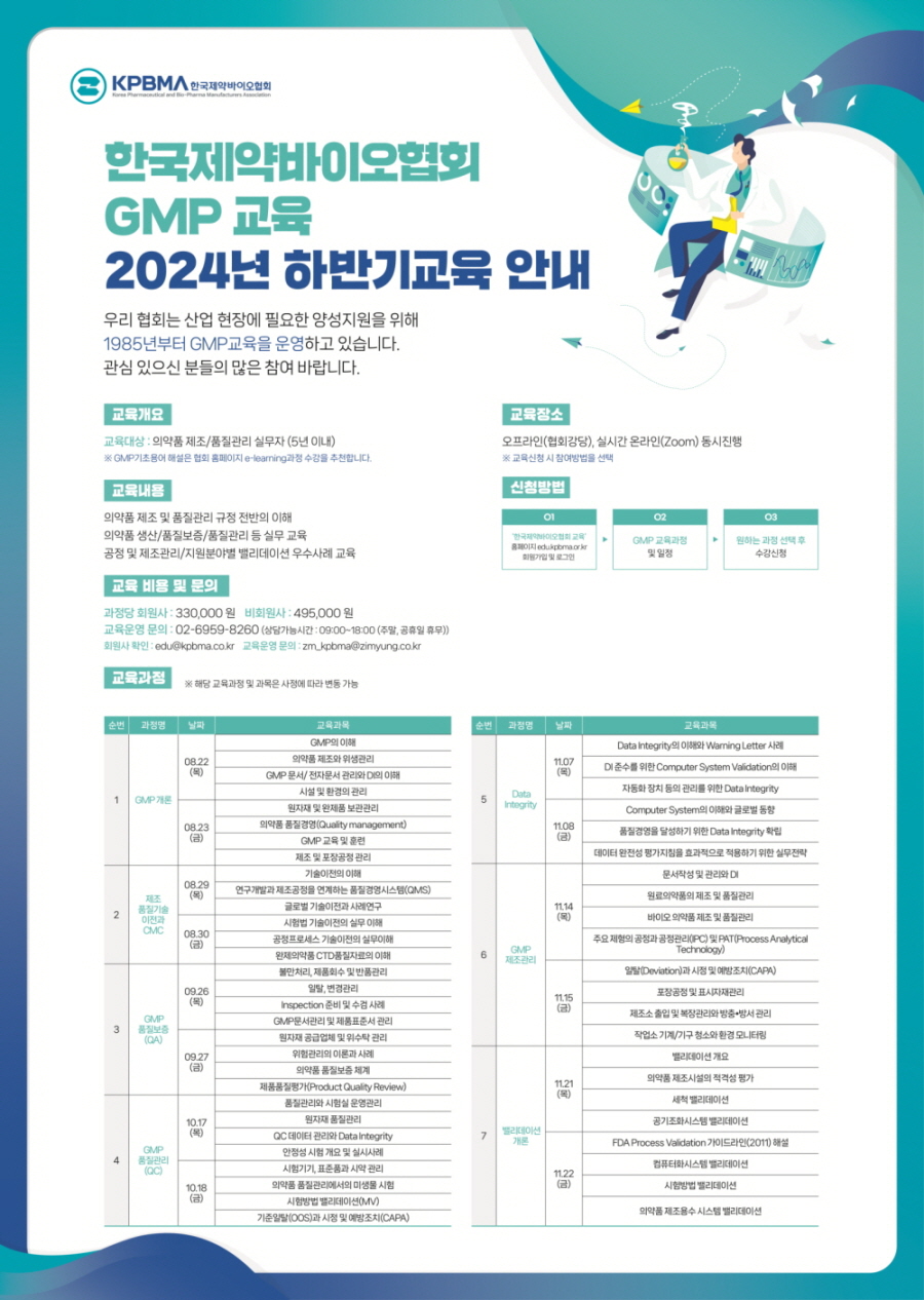 | 수강대상 | 의약품 제조 품질기술이전 및 CMC업무 5년차 미만 실무자 |