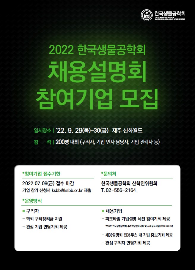 행사명 : 2022 한국생물공학회 채용설명회
